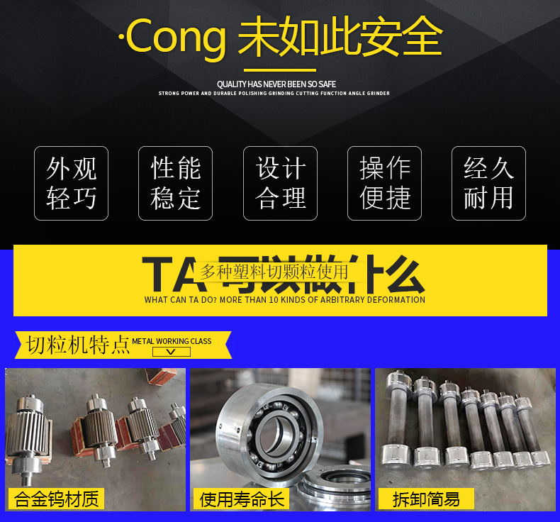 1:切粒機采用品牌電機。